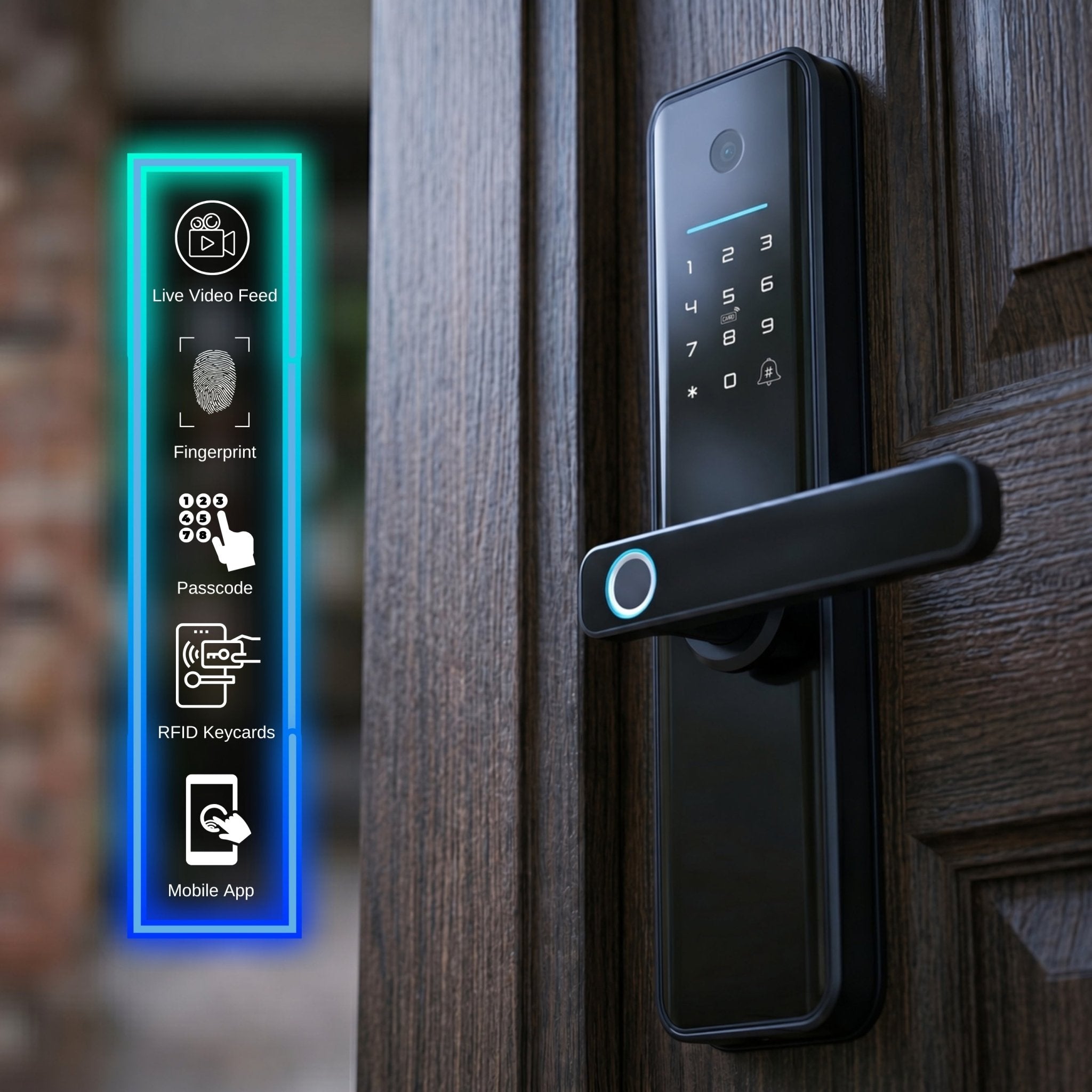 ✅ Open your door with fingerprint, passcodes, and keycards.